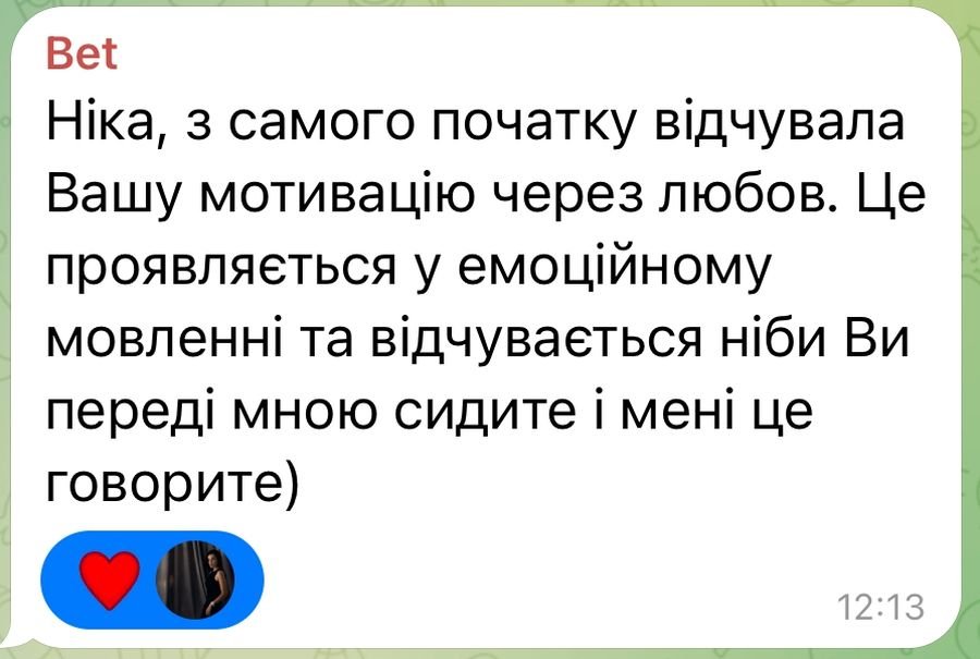 Я вірю ,як людина і знаю як КПТ-психолог , що наше сприйняття життя відбувається крізь призму думок і стану, що вирують всередині. Тому безглуздо починати ззовні. Я допомагаю людям змінювати внутрішнє першоджерело, за яким змінюється і реальність довкола…